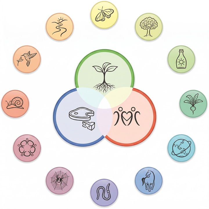 Permaculture is a design science which works towards creating resilient, working, circular systems, starting with observing and mimicking nature. It is not just about what we grow, but how different elements come together to support and sustain each other over time. Permaculture has its ethics and principles as its defining values, guiding how we design, intervene, and relate to the land and to each other.